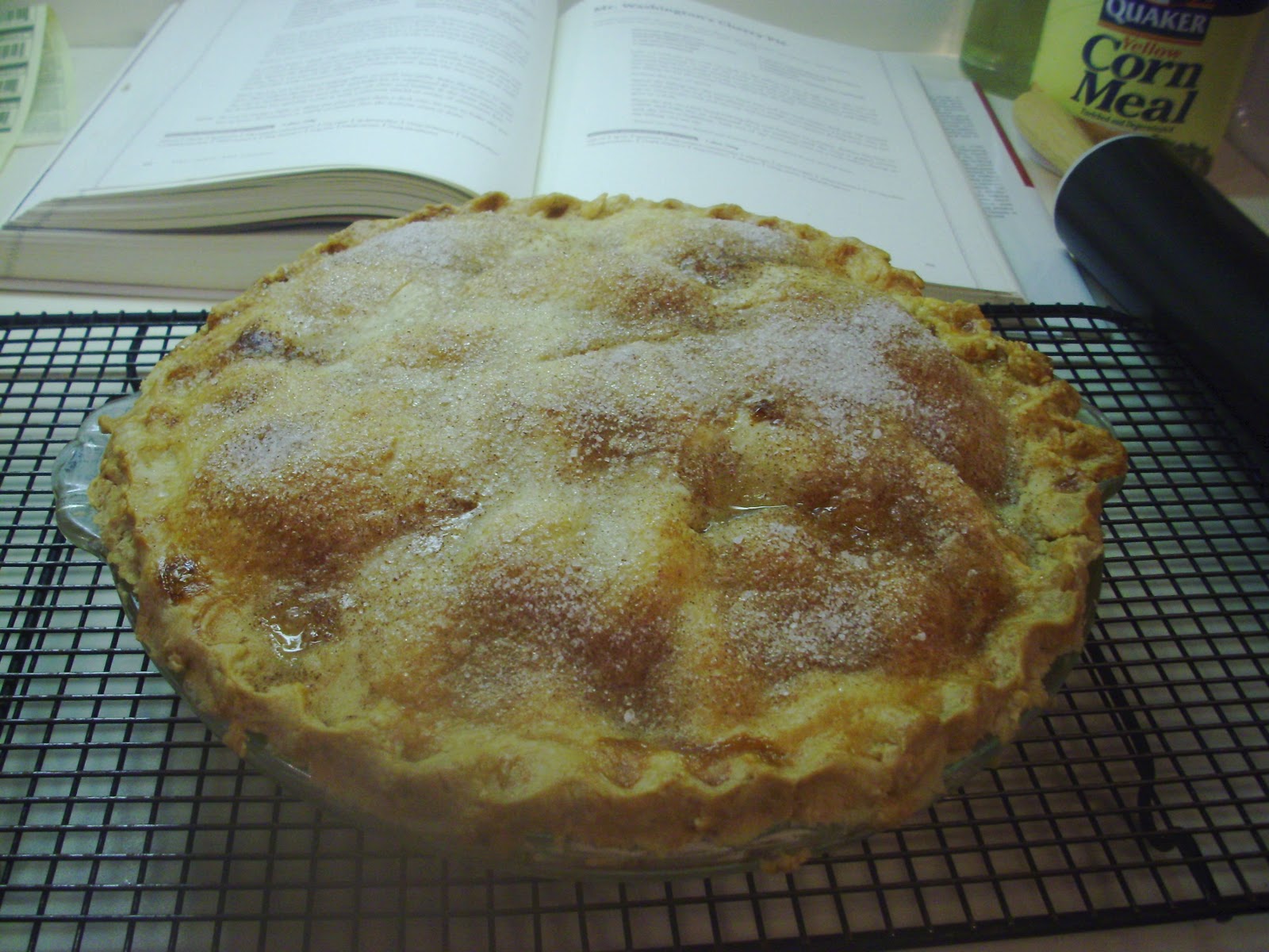Worm Burner and I made this lovely apple pie. He was in charge of the apple picking, ingredient measuring, and crust pinching. I manned (womaned?) the rolling pin and the apple slicer. Together we made quite a team, not to mention dessert.