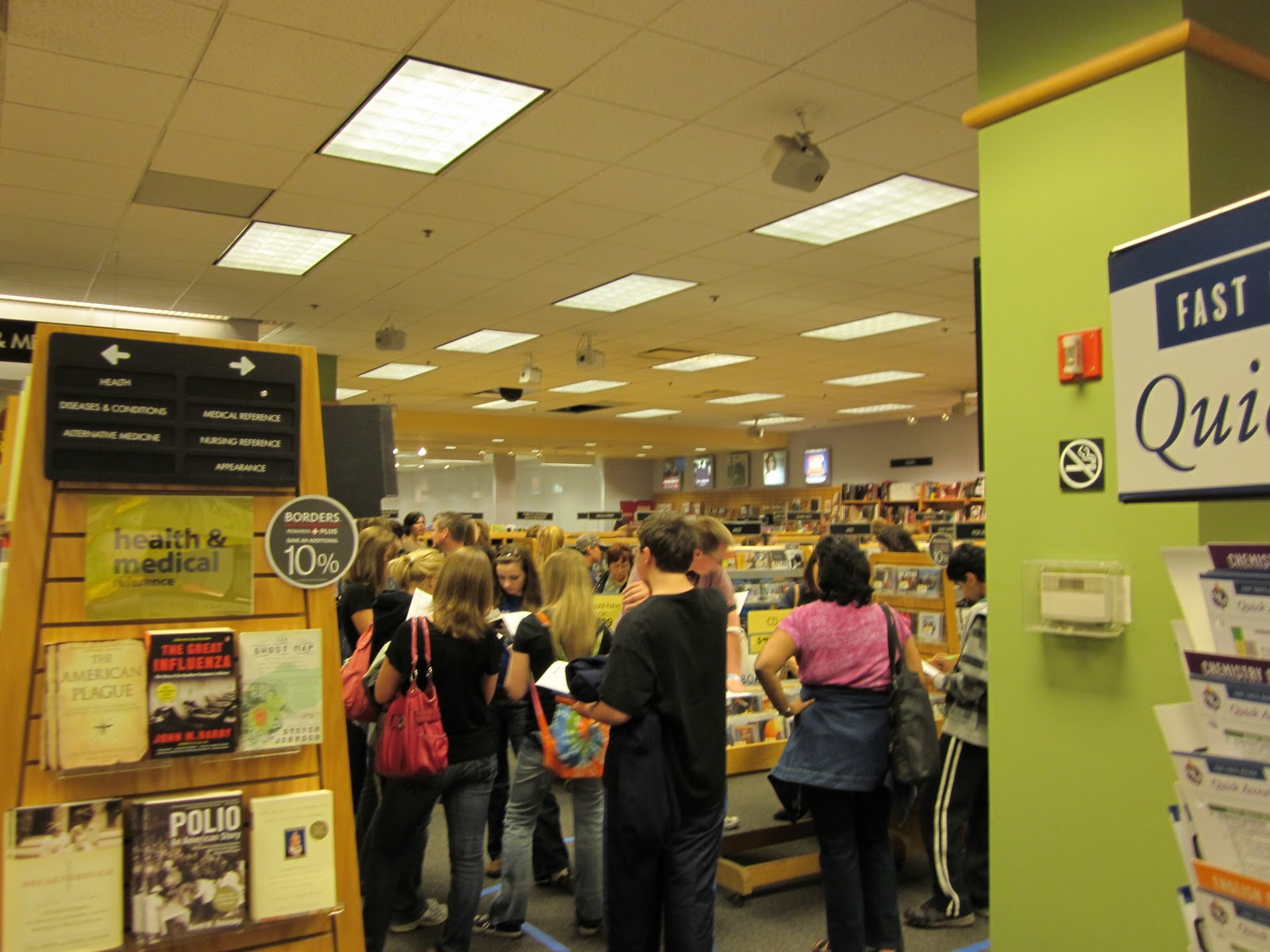 People were threaded through every aisle in the bookstore, waiting for up to two hours, all to have their books stamped by Suzanne Collins.
