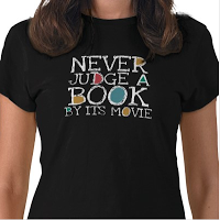 Love the shirt Don't Judge A Book By The Movie. How many great books have been turned into bad movies? Too many.