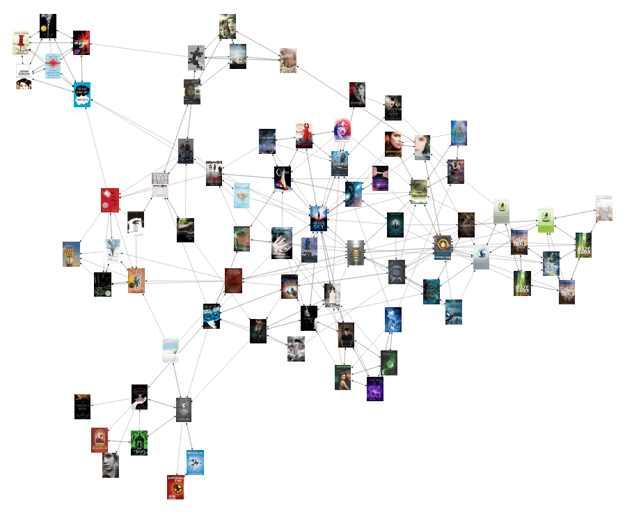 What you’re looking at is essentially a way to visualize the “also boughts” list on Amazon.
