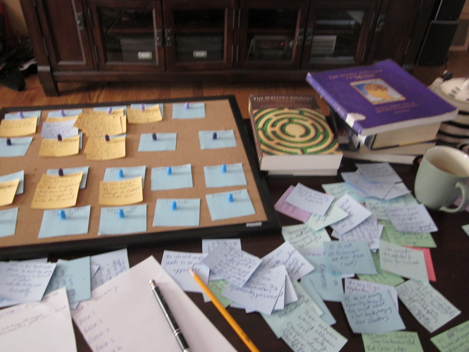 But as I scribbled madly on small squares of paper and outlined and drank more tea, I realized that none of that mattered. The act of creation was here-and-now and this, THIS, was what I loved. Not only the act itself, but the more I outlined/wrote, the more I loved this particular story. Which told me I was working on the right thing.