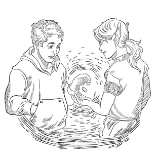 Finn jerked from surprise. An electric buzz shot through his arm—it wasn’t painful, but it made him jerk even harder. The boy’s clothes faded away and were replaced by new ones: a tunic and gold armband that both looked as ancient as the coin.