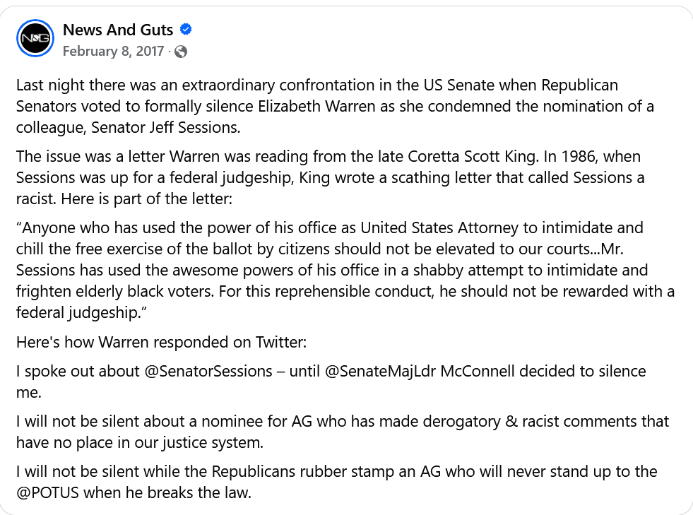 As it happens, a speech about a racist nominee for US Attorney General.