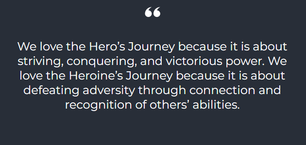 | IMPORTANT NOTE #1 Heroes can be male/female/non-binary. Same for Heroines. Wonder Woman is a Hero. Harry Potter is a Heroine. The Journeys should be labeled Warrior/Peacekeeper or Adventurer/Healer but they’re not because we’re still steeped in a world that thinks only the male-patterned stories are the “important” ones. |