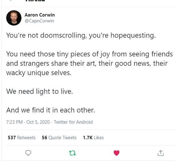 Hopequesting. I can’t think of a better term to describe the act of writing hopepunk in 2020.