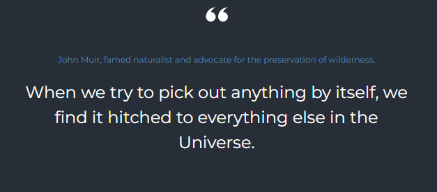 That’s what being connected means—your life affects mine, mine affects yours, and we’re all on this lifeboat in the middle of space together.