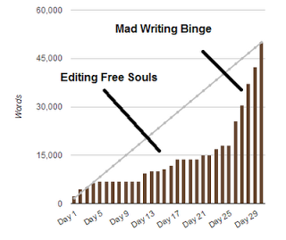 So, 5 days left in NaNoWriMo, and my chart looks like this: I like how the scale goes to an optimistic 60,000 words. Prudence: Well, that’s not looking good. Lot of white space on that graph. Me: Hey, I sent Free Souls off to the copyeditor! At least I accomplished that on time. Where’s Fear anyway? I want to gloat. Prudence: You… Read More